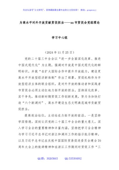 / 为高水平对外开放贡献贸促担当——xx市贸促会党组理论学习中心组