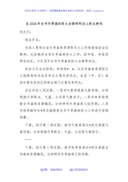 / 在2024年全市冬季森林防火会商研判会上的主持词