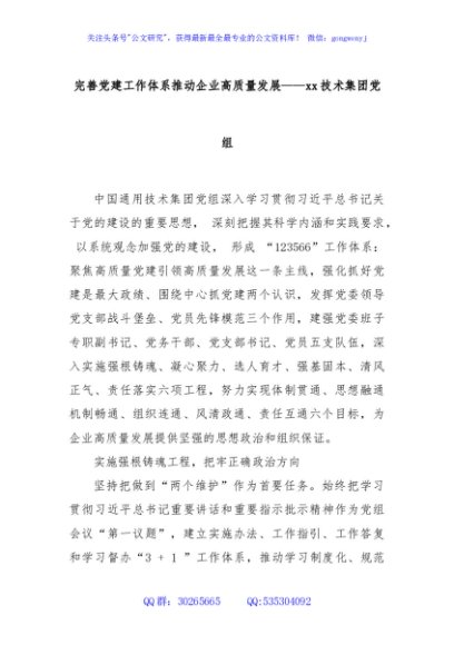 / 完善党建工作体系推动企业高质量发展——xx技术集团党组