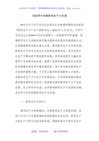 / 浅谈审计助推新质生产力发展