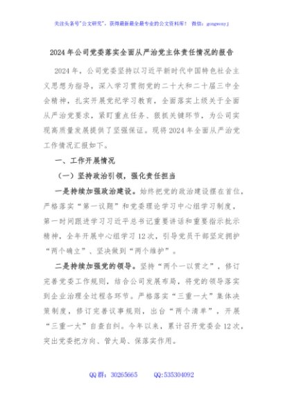 / 2024年公司党委落实全面从严治党主体责任情况的报告