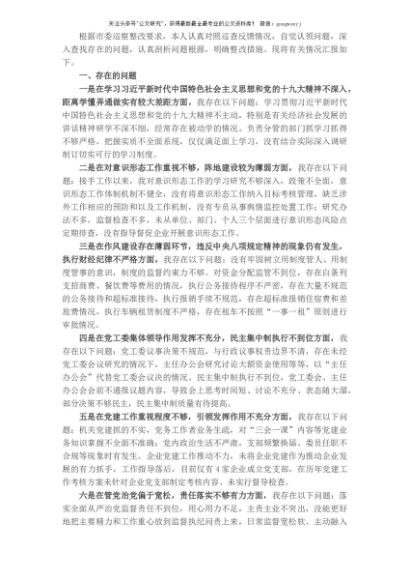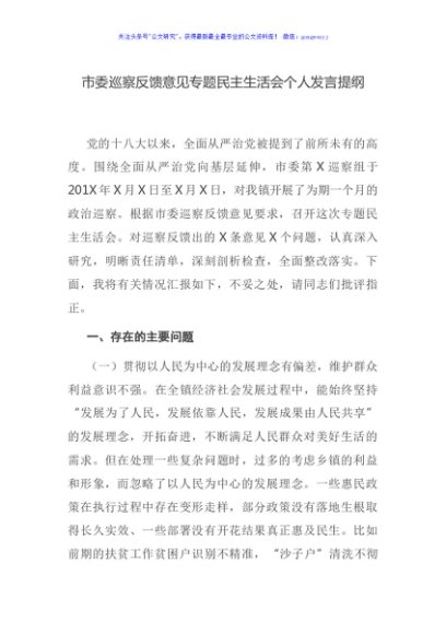 市委巡察反馈意见专题民主生活会个人发言提纲
