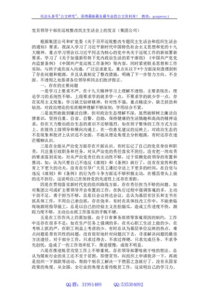 / 党员领导干部在巡视整改民主生活会上的发言(集团公司)