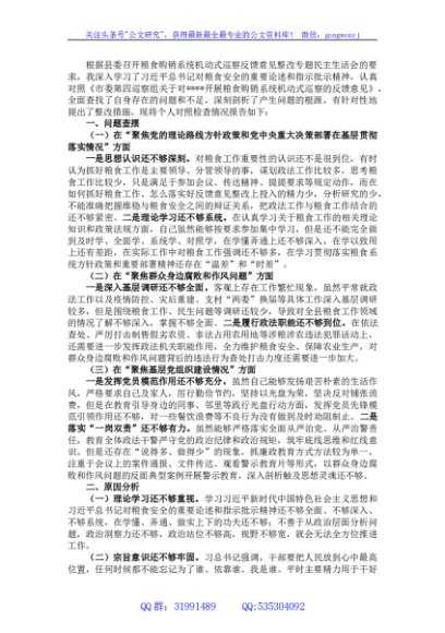 / 关于2023年粮食购销系统机动式巡察反馈意见整改专题民主生活会发言提纲