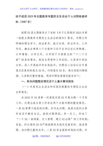 党委书记、局长主题教育民主生活会个人对照检查材料