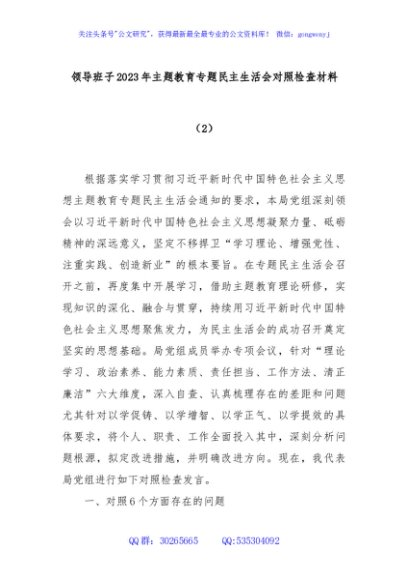 / 领导班子2023年主题教育专题民主生活会对照检查材料