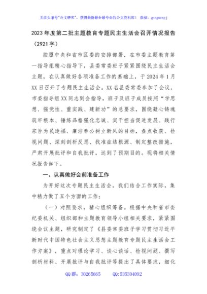 / (会后)2023年度第二批主题教育专题民主生活会召开情况报告