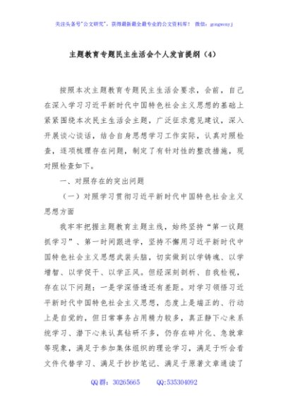 / 主题教育专题民主生活会个人发言提纲(4)