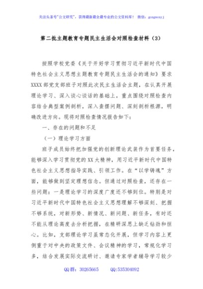 / 第二批主题教育专题民主生活会对照检查材料(2)