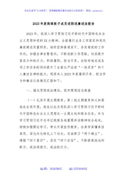 / 2023年度街道板子成员述职述廉述法报告