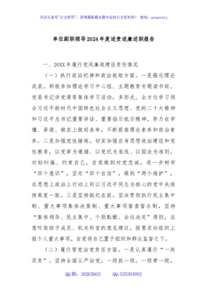 / 单位副职领导2024年度述责述廉述职报告