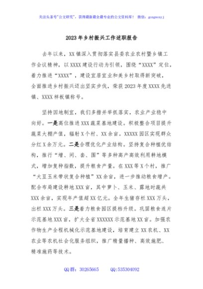/ 2023年乡村振兴工作述职报告