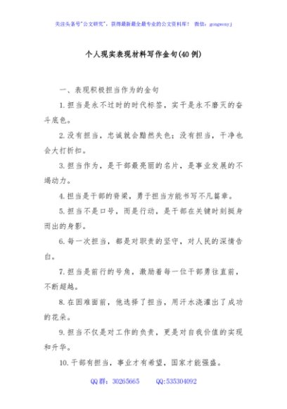 (40例)个人现实表现材料写作金句