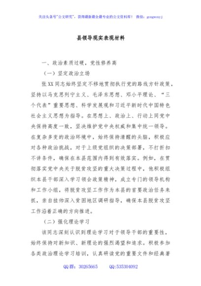 县领导现实表现材料