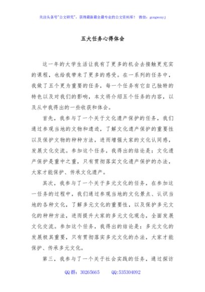 / 五大任务心得体会