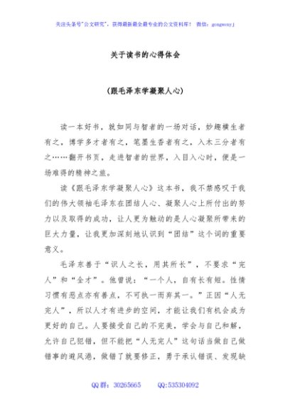 关于读书的心得体会 (跟毛泽东学凝聚人心)