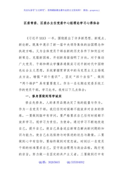 / 区委常委、区委办主任党委中心组理论学习心得体会