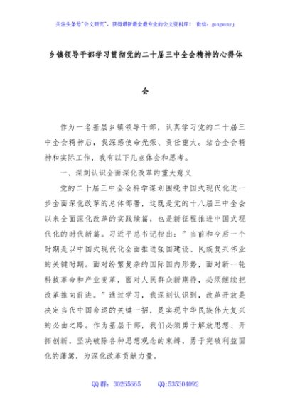 / 乡镇领导干部学习贯彻党的二十届三中全会精神的心得体会