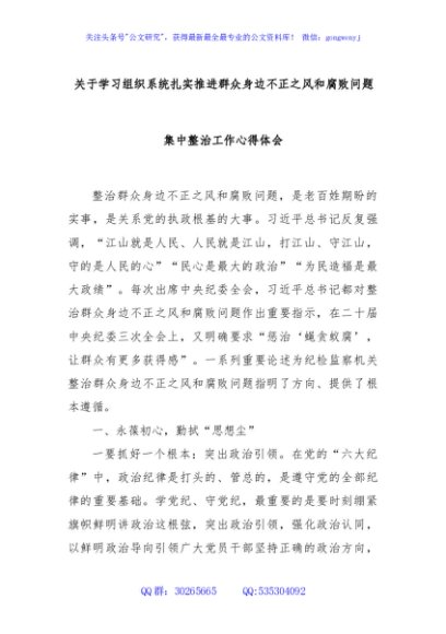 关于学习组织系统扎实推进群众身边不正之风和腐败问题集中整治工作心得体会