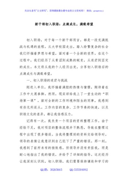 - 新干部初入职场:点滴成长,满载希望(2010字) 12-24