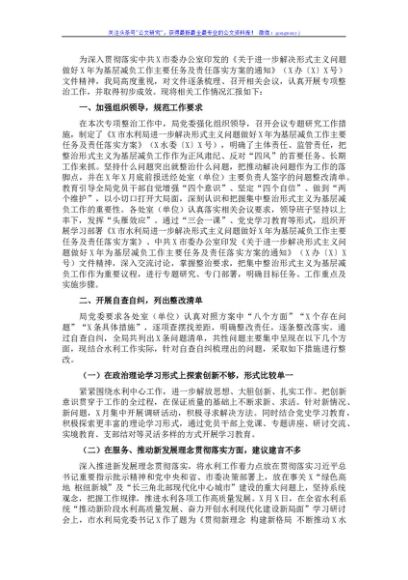 水利局2021年以来整治形式主义为基层减负工作开展情况的专题汇报