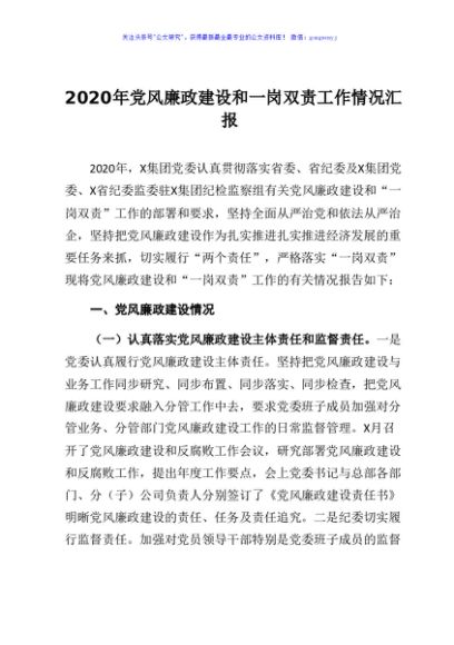 2020年党风廉政建设和一岗双责工作情况汇报