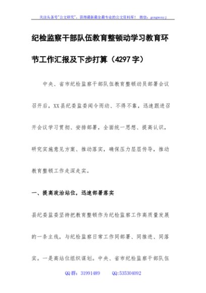/ 纪检监察干部队伍教育整顿动学习教育环节工作汇报及下步打算