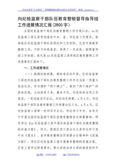 向纪检监察干部队伍教育整顿督导指导组工作进展情况汇报