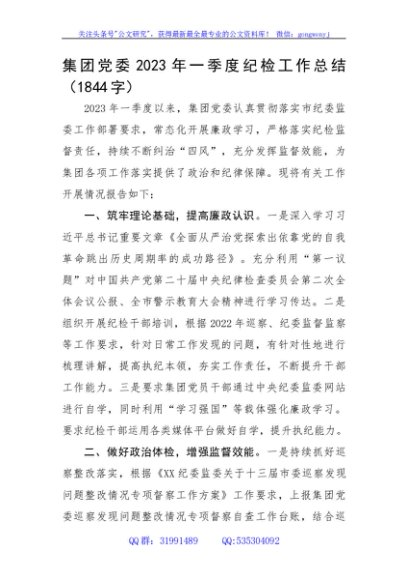 / 国企党委2023年一季度纪检工作总结