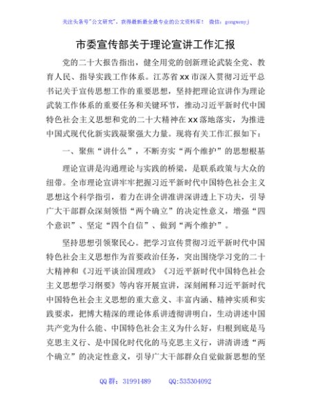 / 市委宣传部理论宣讲工作总结汇报