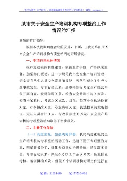 / 某市关于安全生产培训机构专项整治工作情况的汇报