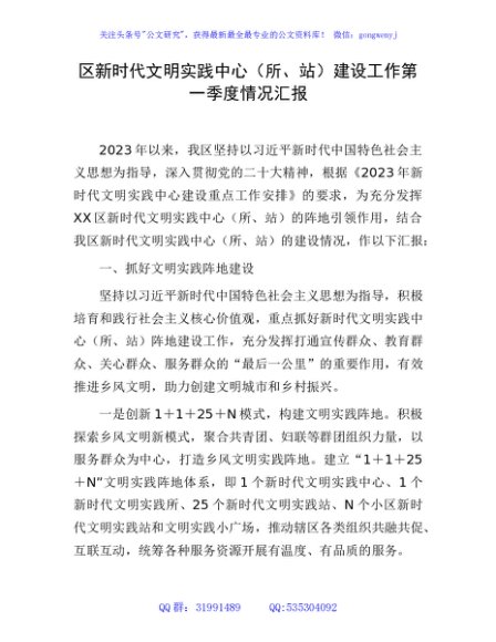 区新时代文明实践中心(所、站)建设工作第一季度情况汇报