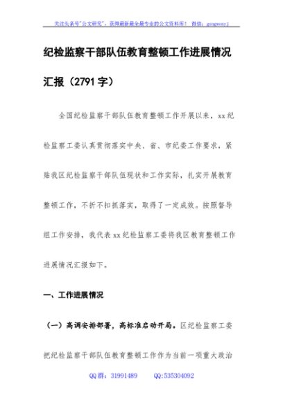 / 纪检监察干部队伍教育整顿工作进展情况汇报