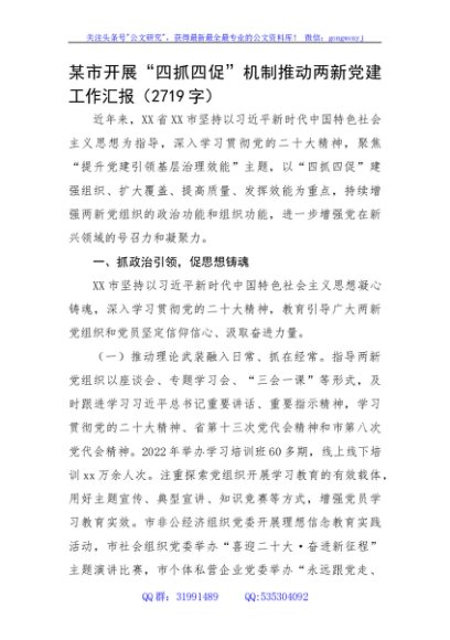 / 开展“四抓四促”机制推动两新党建工作汇报