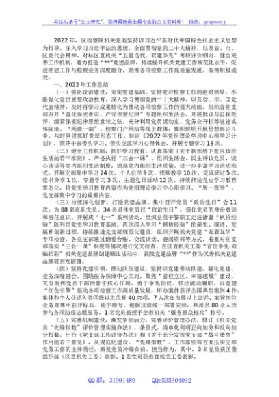 区检察院2022年度党建工作总结