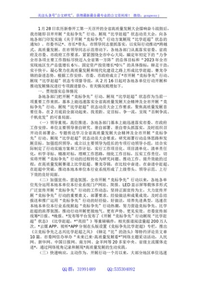 各地各部门开展“竞标争先”行动展现“比学赶超”状态的阶段性情况报告