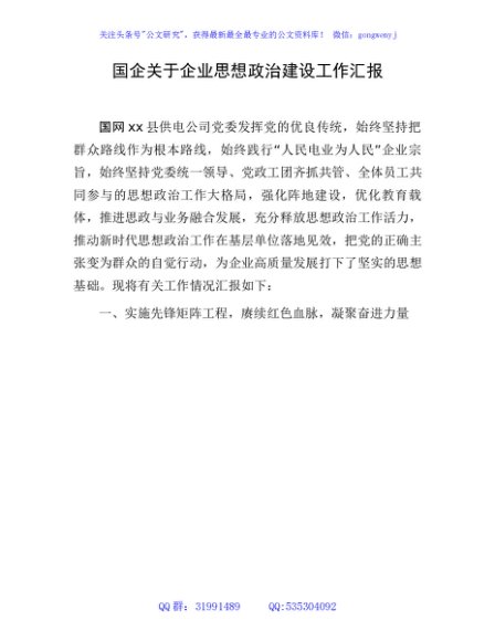 / 国企思想政治建设工作汇报(供电公司)