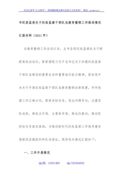 / 关于纪检监察干部队伍教育整顿工作推进情况汇报材料