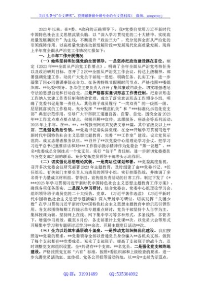 / 党委(党组)2023年上半年全面从严治党工作总结
