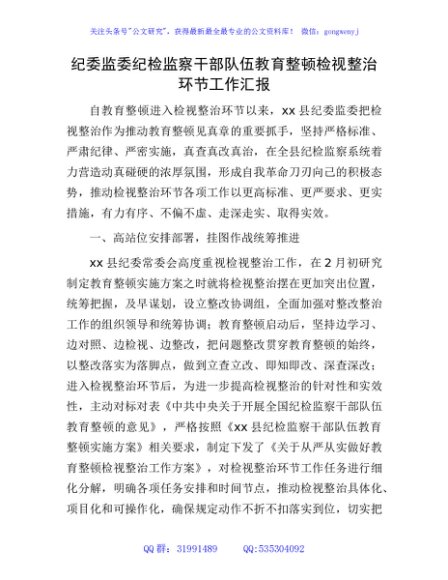 / 纪检监察干部队伍教育整顿检视整治环节工作总结汇报3400字(纪委监委)