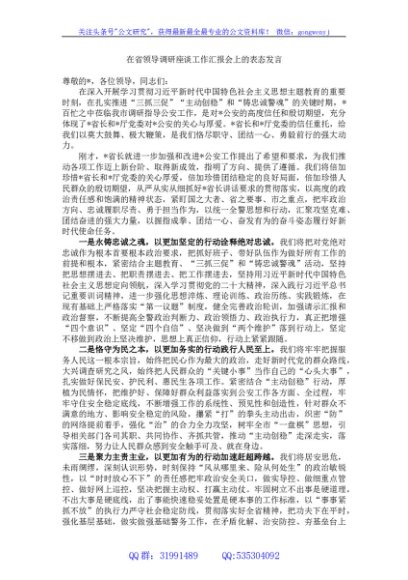 / 在省领导调研座谈工作汇报会上的表态发言