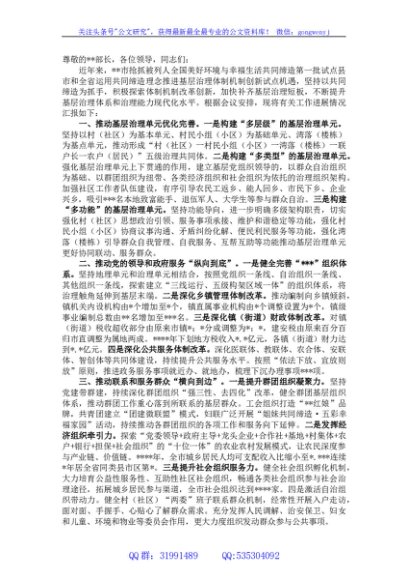 / 在全市“美好环境与幸福生活共同缔造”活动推进会上的汇报发言