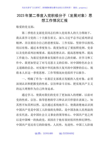 / 2023年第二季度入党积极分子(发展对象)思想工作情况汇报