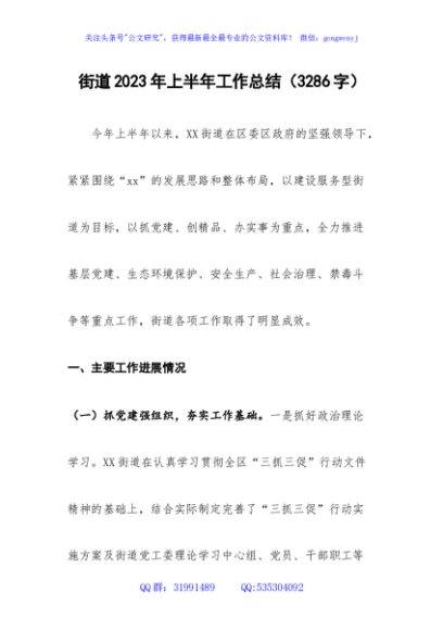 / 街道2023年上半年工作总结