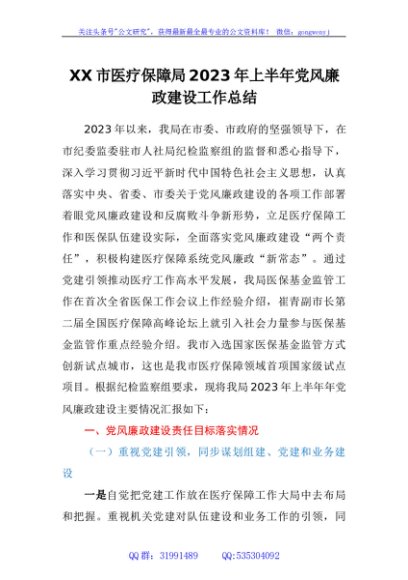 / 市医疗保障局2023年上半年党风廉政建设工作总结