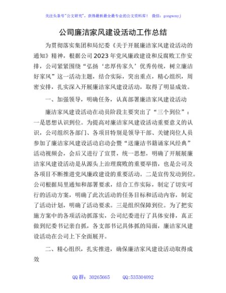 / 国企廉洁家风建设活动工作总结1800字