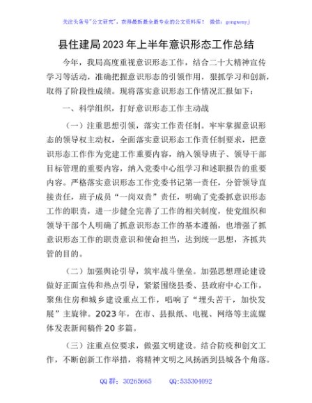 / 2023年上半年意识形态工作总结(住建2500字)