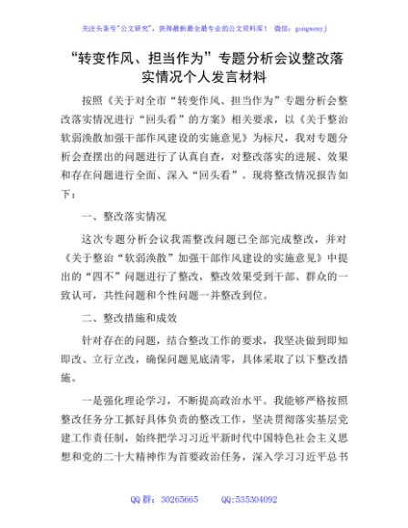 / “转变作风、担当作为”专题个人整改落实情况报告