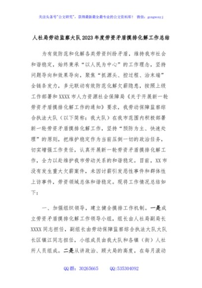 / 人社局劳动监察大队2023年度劳资矛盾摸排化解工作总结