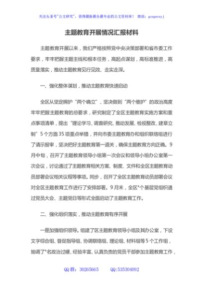 主题教育开展情况汇报材料